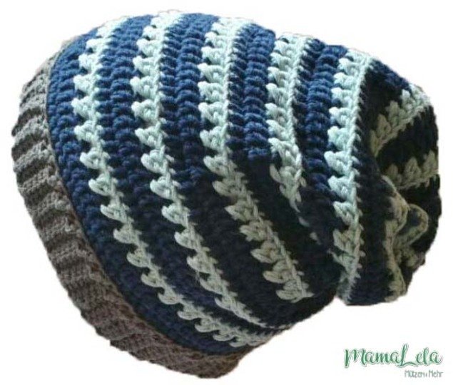 Die Mütze lässt sich mit der aufgeführten, zusätzlichen Beschreibung ganz leicht an einen anderen Kopfumfang anpassen. Ebenso ist dadurch die Verwendung eines anderen Garnes kein Problem.