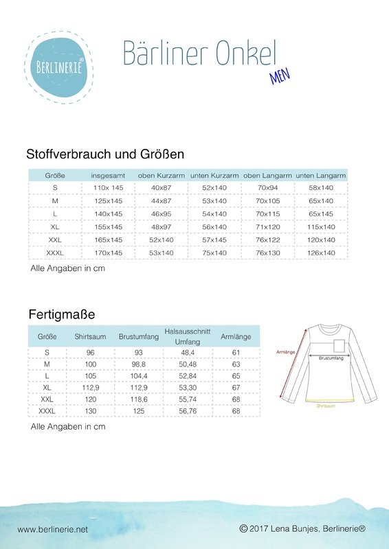 Das Shirt zeichnet sich durch eine Teilung des Oberteiles aus, die in die Ärmel übergeht. Der Schnitt ist für dehnbare Stoffe wie Jersey oder Viskosejersey ausgelegt. Du kannst es in Kurz-oder Langarm nähen und mit einer optionalen Brusttasche versehen.