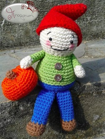 Ob man diesen kleinen Kerl nun in Herbstfarben oder weihnachtlich häkelt...