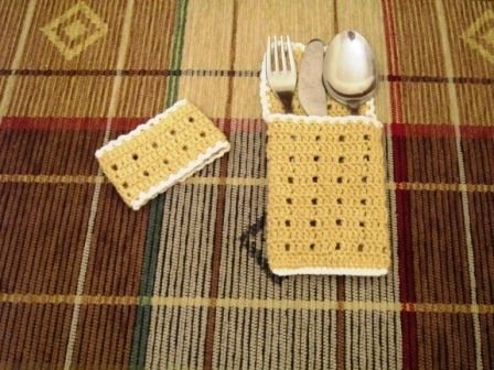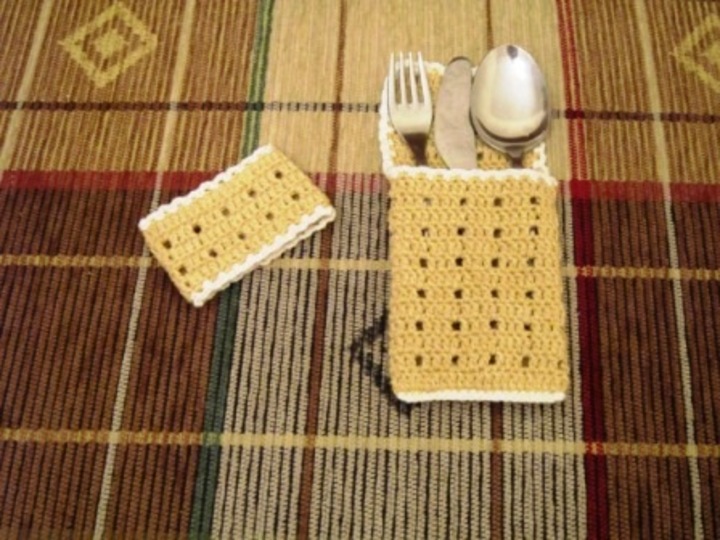 Die Bestecktasche und der Serviettenring sind Reihe für Reihe bzw. Runde für Runde ausführlich erklärt.