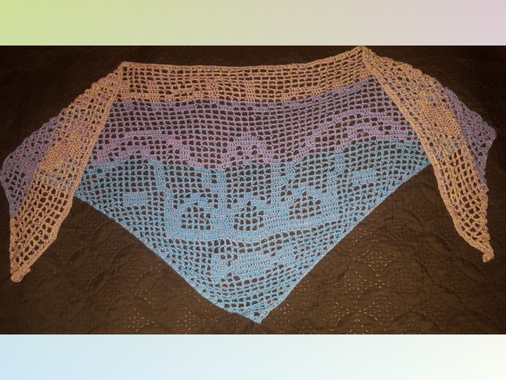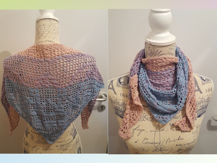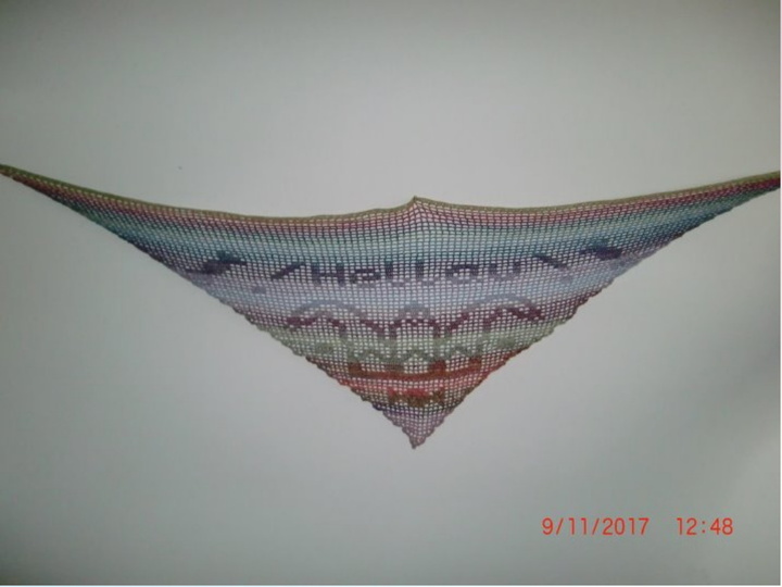Das tuch hat eine Grösse von 150cm * 50 cm . Gefertigt wird dieses mit einer Nadelstärke 2,5 und einem Farbverlaufsgarn mit ca 375 m LL ( dreifädrig) Die Grösse kann abweichen je nach Nadelstärke und Garnart.