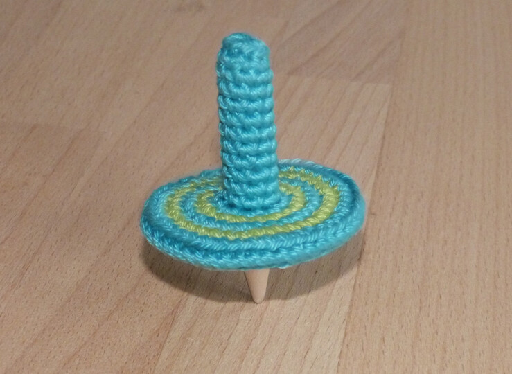 Bei Verwendung von Baumwollgarn mit einer Lauflänge von ca. 125m/50g und Nadelstärke 2,5 werden die Kreisel ca. 5 cm lang (ohne Bleistift gemessen) und 5,5 bis 6,5 cm breit. Die Kreisel sind schnell fertig und sehr gut geeignet, um Garnreste zu verbrauchen!
