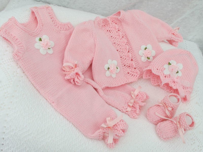 Strickanleitung für ein wunderschönes Set, 4-teilig für Babys & Reborns, Gr. 50/54