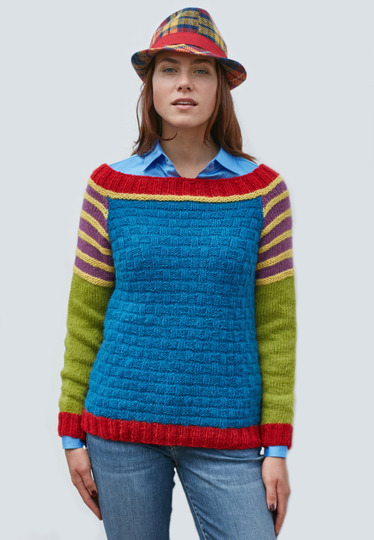 Mit diesem farbenprächtigen Grafik-Pulli bringen Sie frischen Wind in Ihre Winteroutfits. Er hat einen schönen weiten Ausschnitt und wird bis zur Raglanschrägung im Kästchenmuster rundgestrickt.