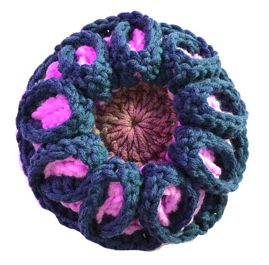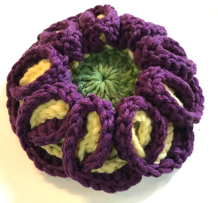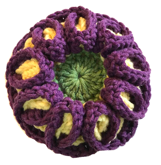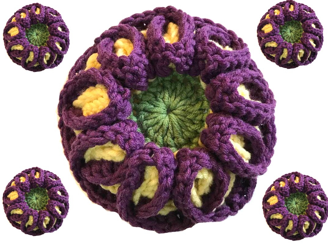 Diese dreidimensionale Blume ist eine schöne Handarbeit..Du kannst hier Deine Reste verarbeiten und die Blume als Haarschmuck, als Brosche oder als Mützenbommel benutzen