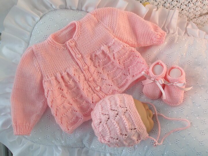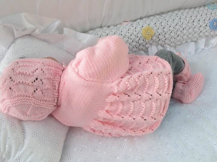 Strickanleitung für ein wunderschöneBabygarnitur, 3-teilig für Babys, Gr. 56/62
