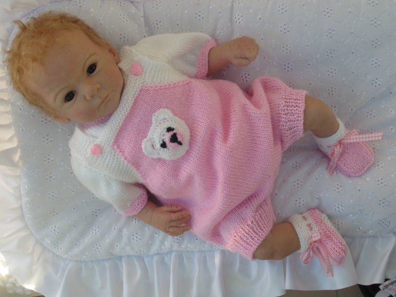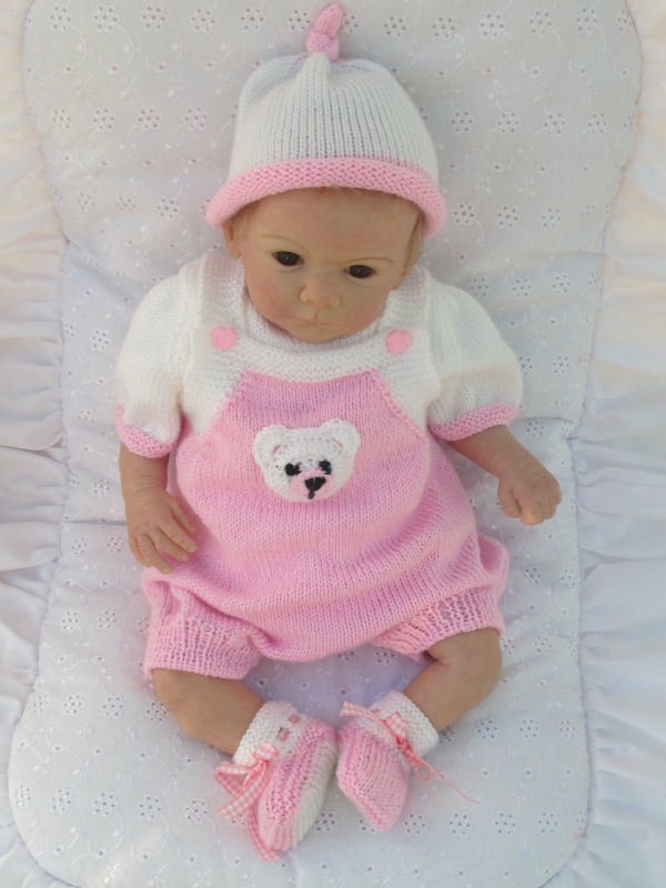 Strickanleitung für ein wunderschönes Set, 3-teilig für Reborns, Gr. 50 die Anleitung für den Teddykopf ist auch dabei