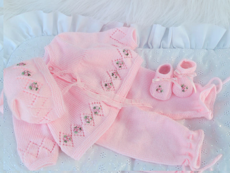 Strickanleitung für ein wunderschönes Set, 4-teilig für Babys & Reborns, Gr. 50/54