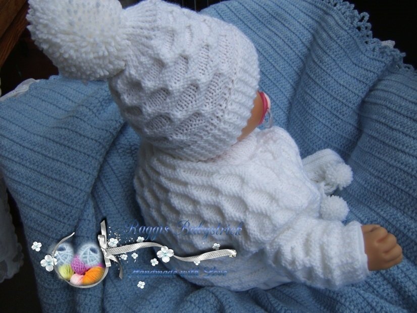 Strickanleitung für ein wunderschönes Set, 3-teilig für Babys & Reborns, Gr. 50/56