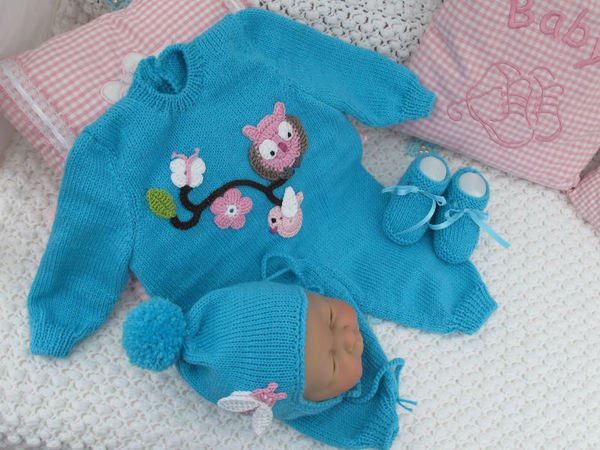 Strickanleitung für ein wunderschönes Set, 3-teilig für Babys & Reborns, Gr. 50/54