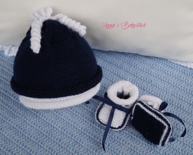 Das Set ist aus Babysoftwolle Nd. - Nr. 3 gestrickt.