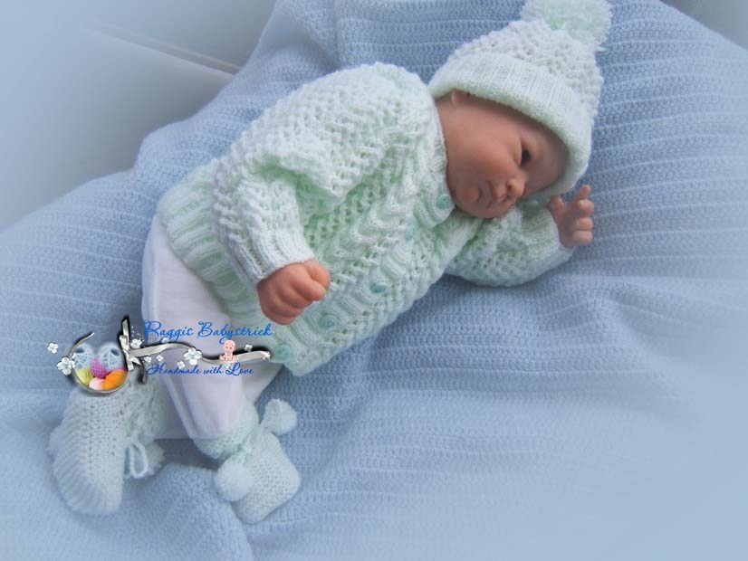 Strickanleitung für ein wunderschönes Set, 3-teilig für Babys & Reborns, Gr. 50/56