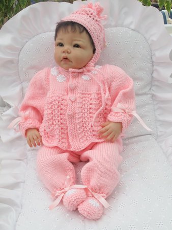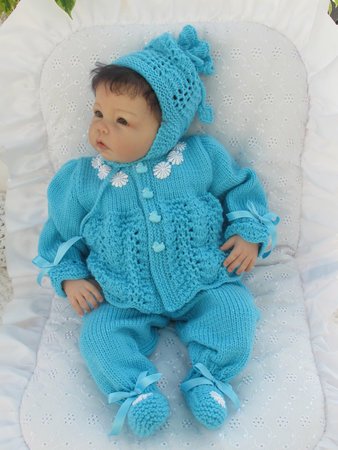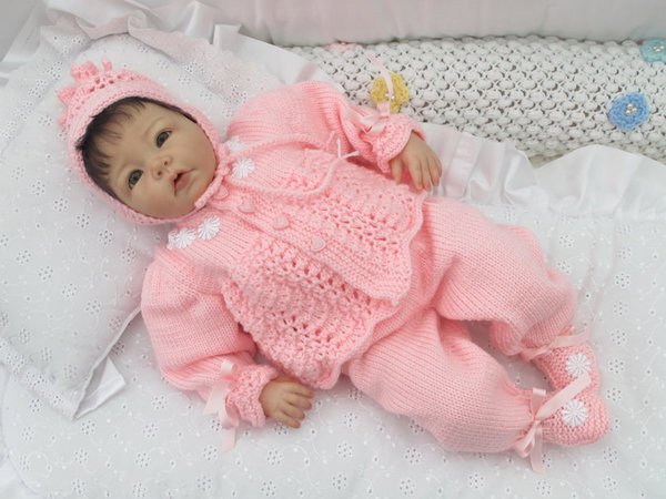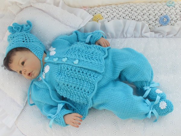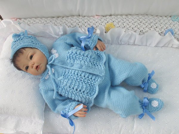 Strickanleitung für ein wunderschönes Set, 3-teilig für Babys & Reborns, Gr. 50/54