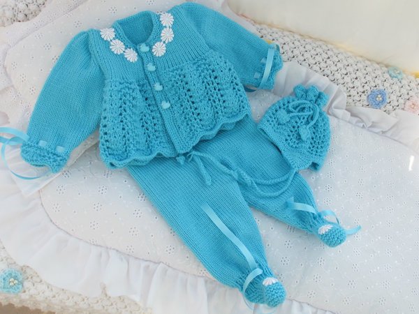 Das Set ist aus Babywolle gestrickt.