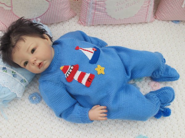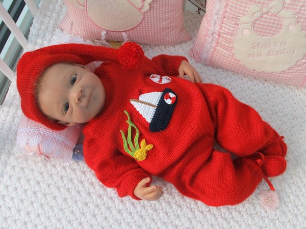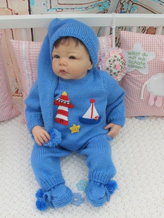 Das Set ist aus Babywolle gestrickt. Die Anleitungen für die Häkelapplikationen sind hier nicht dabei in der Anleitung steht dann wo du die erwerben kannst