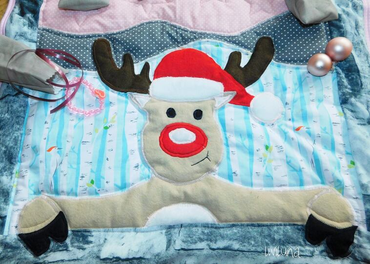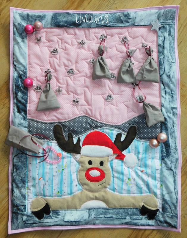 Anleitung für einen liebevoll genähten Adventskalender mit Rentier-Motiv.
