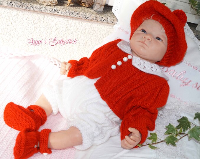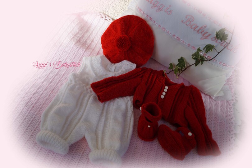 Strickanleitung für ein wunderschönes Set, 3-teilig für Babys & Reborns, Gr. 50/56