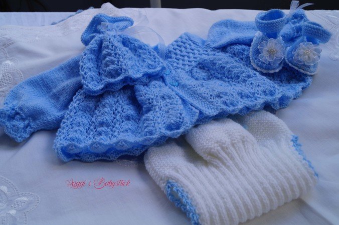Das Set ist aus Babysoftwolle Nd. - Nr. 3 gestrickt.