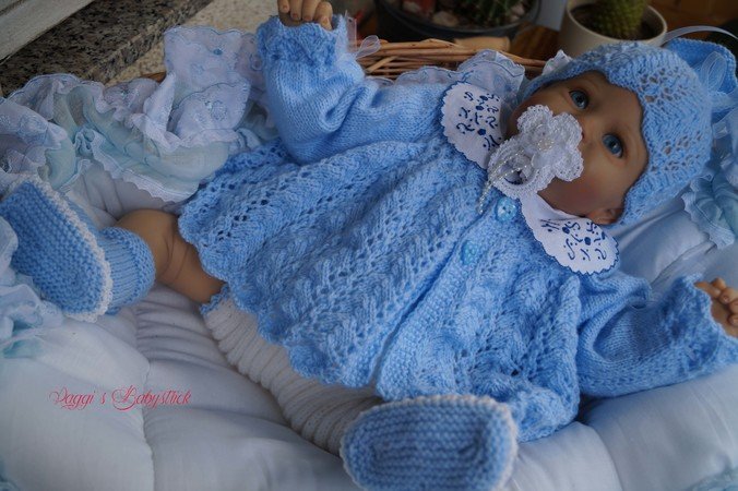 Strickanleitung für ein wunderschönes Set, 3-teilig für Babys & Reborns, Gr. 50/56
