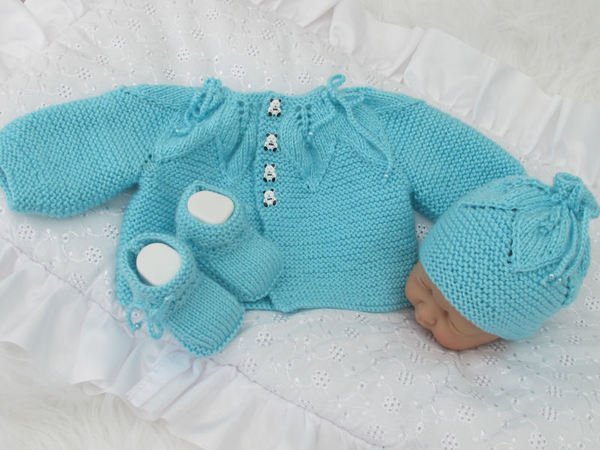 Strickanleitung für ein wunderschönes Set, 3-teilig für Babys , Gr. 56