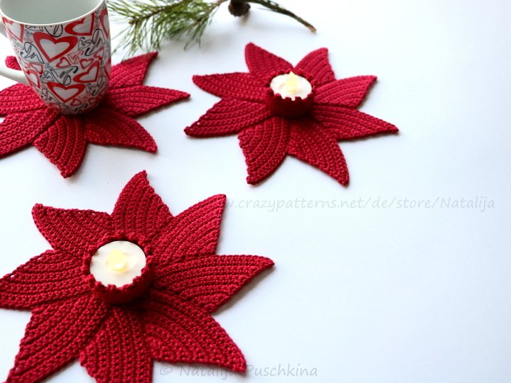 Tassenuntersetzer, Teelichthalter oder Adventkranz 'Blume'.