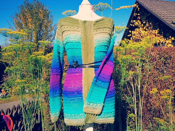 ● verzwirnte Scheepjes Whirls, 215g=1000m (100g=455m) ich habe die Farbe Pistaci Oh so nice benutzt, für meine Jacke in Größe 36/38 haben ich zwei Whirls gebraucht. Ab Größe 42 brauchst du 3 Whirls, ab Größe 48 ca 4 Whirls. Du kannst aber auch ein anderes Garn deiner Wahl verwenden.