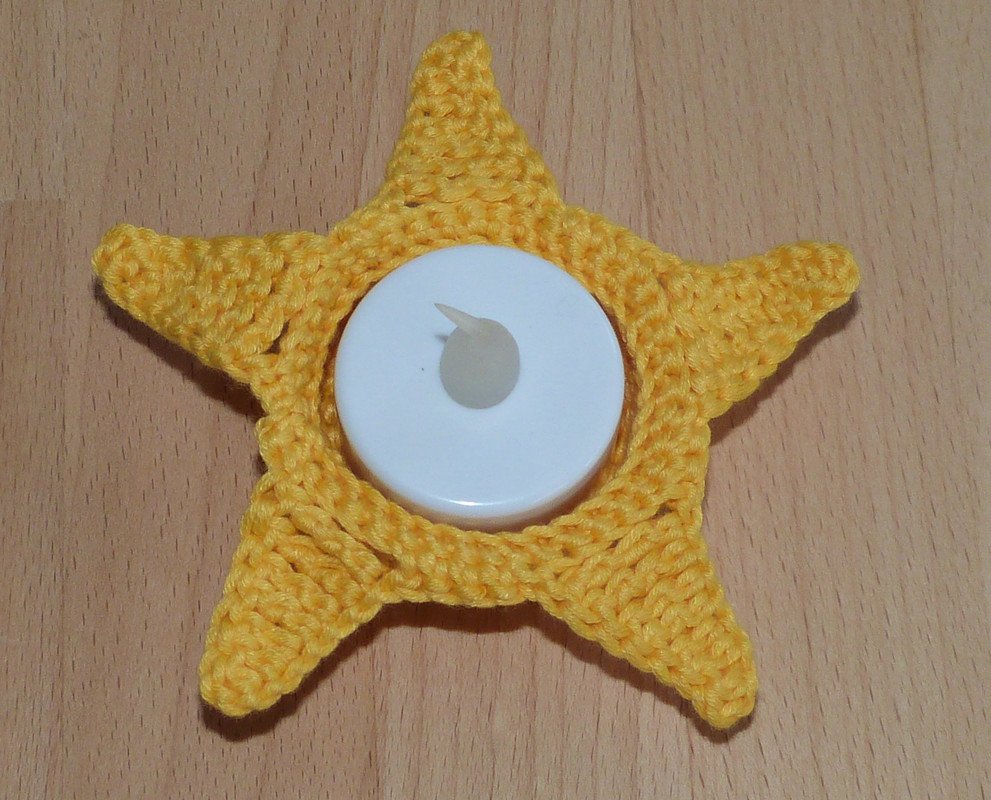 Bei Verwendung von Baumwollgarn mit einer Lauflänge von 125m/50g und Nadelstärke 2,5 passen die Halter für Teelichter mit 40 mm Durchmesser. Die Halter werden ca. 9-11 cm breit. Aus Sicherheitsgründen sollten nur elektrische Teelichter benutzt werden!