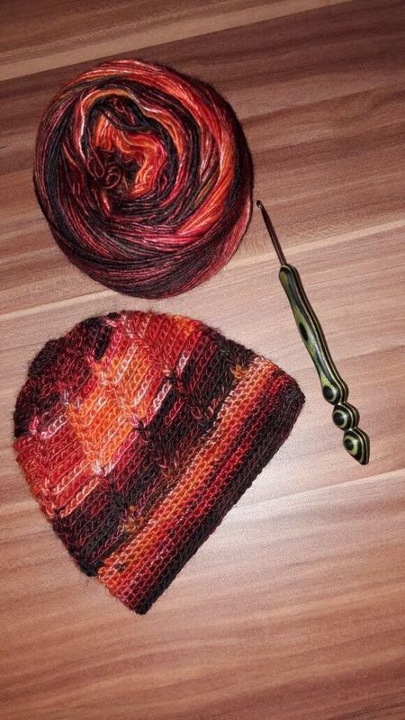 Gehäkelt habe ich sie mit 3-fädiges Garn und einer NS 3,5.