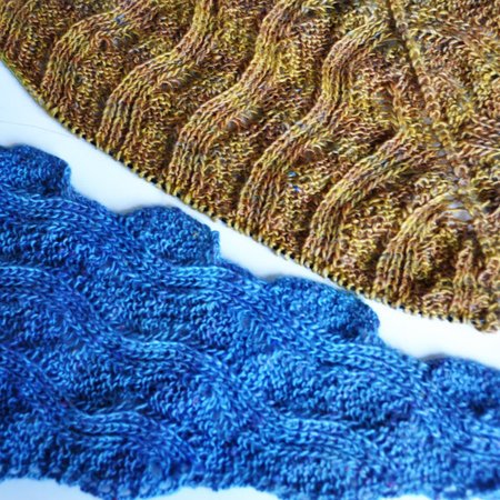 Du musst kein Fan der Beach Boys sein, um diese beiden Tücher zu lieben ;-) Ein bisschen Patent, eine Prise Lace - und fertig ist ein ungewöhnliches Tuch mit bezaubernden „Schwingungen“. Strickst Du es als Baktus, liegen die Wellen quer, strickst Du es als Dreieckstuch von der Oberkante weg, wachsen die Wellen aus der Mittelachse heraus - in beiden Fällen ein schwungvolles Design. Je nach Elastizität des Garns zeigt sich durch die Kombination von Patent und Lace auch ein gewisser plastischer Effekt soferne Du das Tuch nicht spannst…