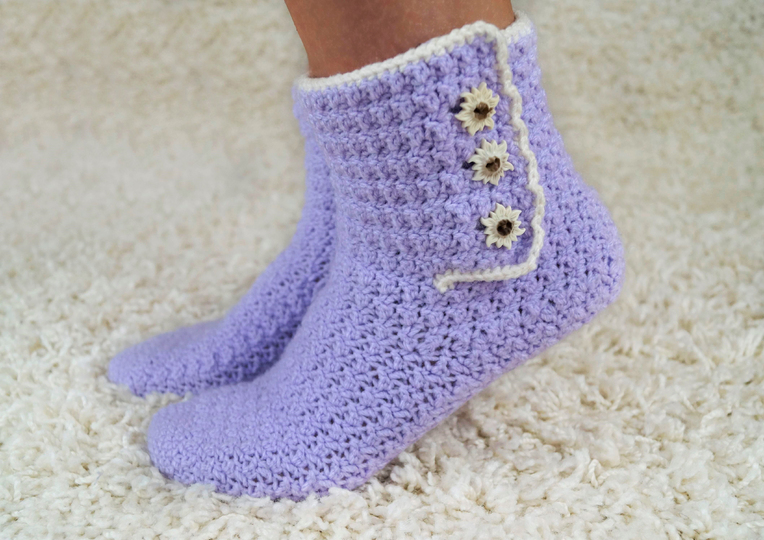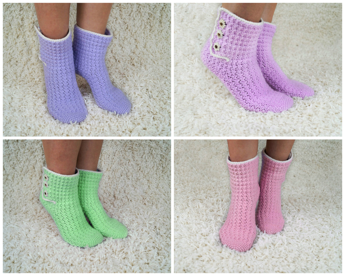 Häkelanleitung Haussocken, Hausschuhe Gr. 36-43 umfasst 15 Seiten mit 36 Bildern.