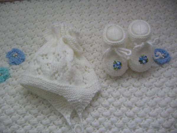 Das Set ist aus Babywolle gestrickt.