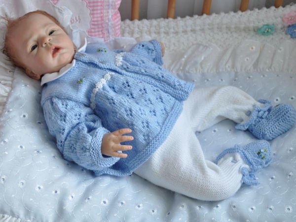 Strickanleitung für ein wunderschönes Set, 3-teilig für Babys & Reborns, Gr. 48/50