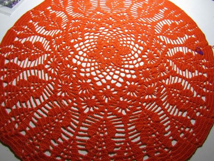 Mit Filetgarn gehäkelt, hat unsere weihnachtliche Mitteldecke ca. 50 cm Durchmesser
