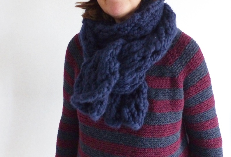 Er ist absolut anfängertauglich und ist aus einer dicken Wolle gestrickt. Natürlich kann er auch mit anderen Garnen nachgearbeitet werden.