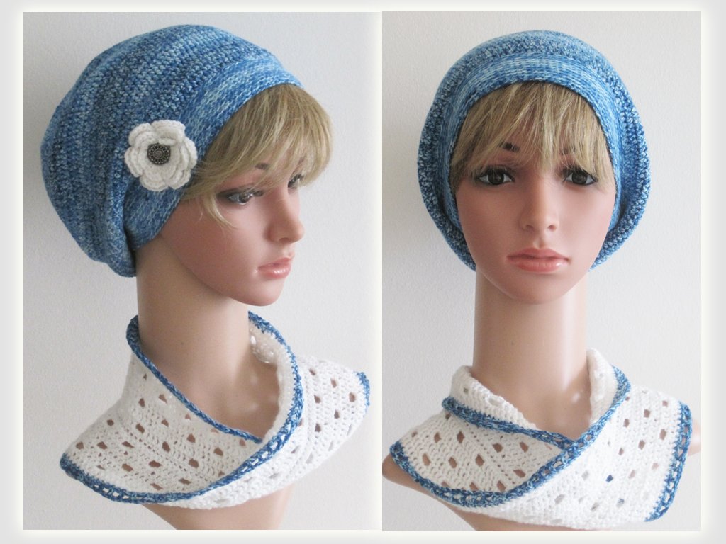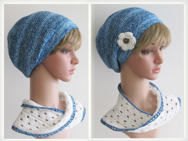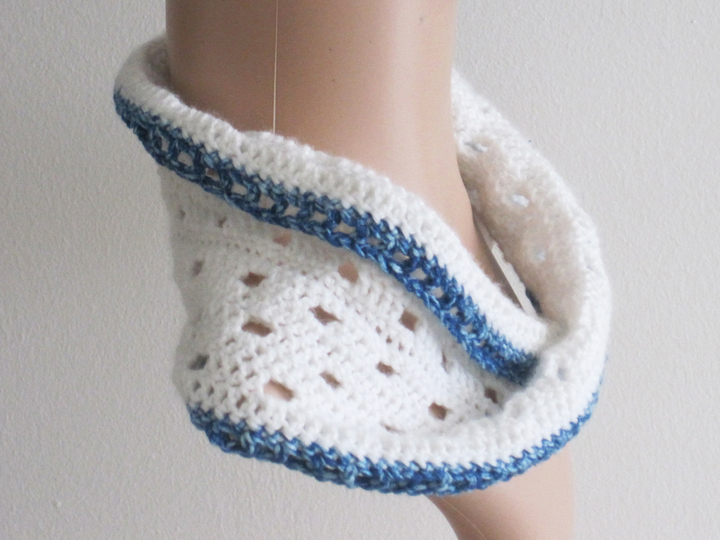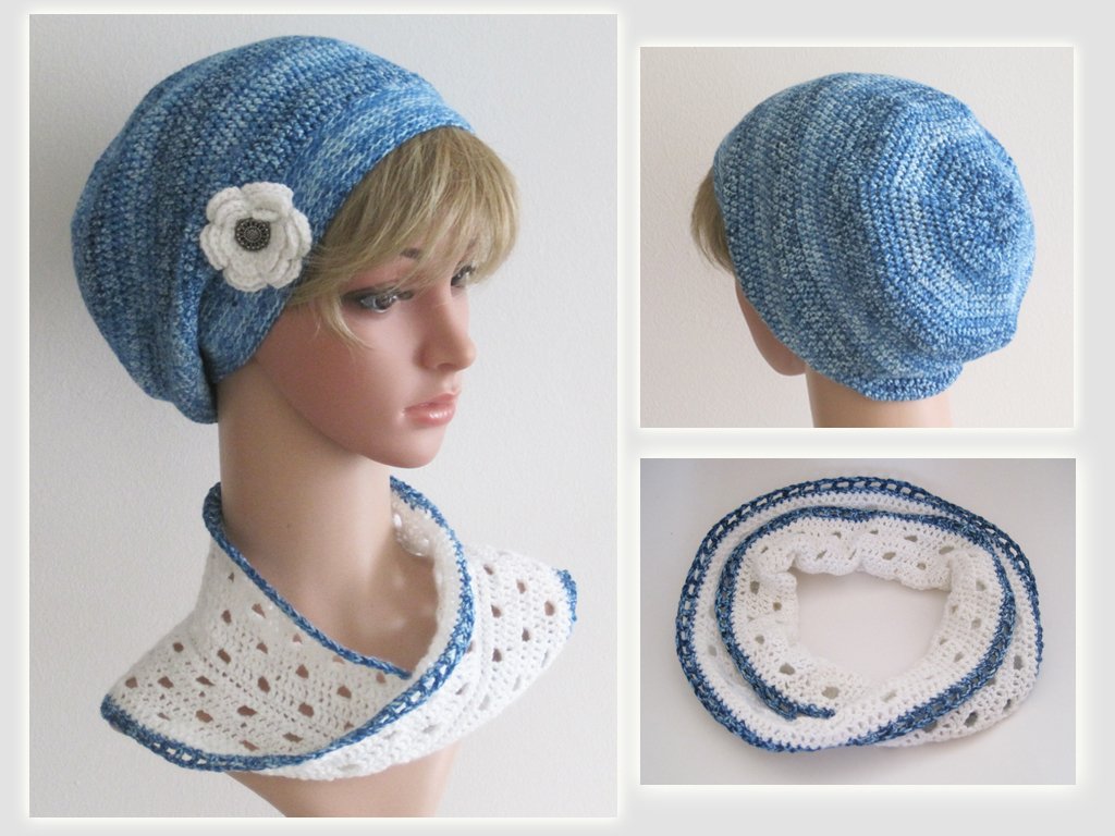 Der Möbiusschal wird mit festen Maschen und Stäbchen gehäkelt. - Nun ist das Set perfekt!