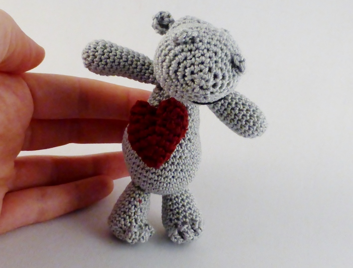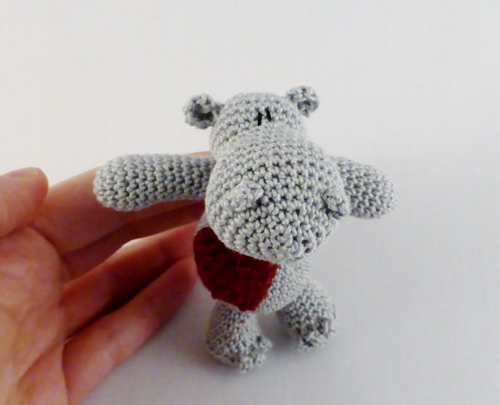 Babyrassel Nilpferd Hipp ist 9 cm hoch (gehäkelt mit einer 2.0 Häkelnadel)