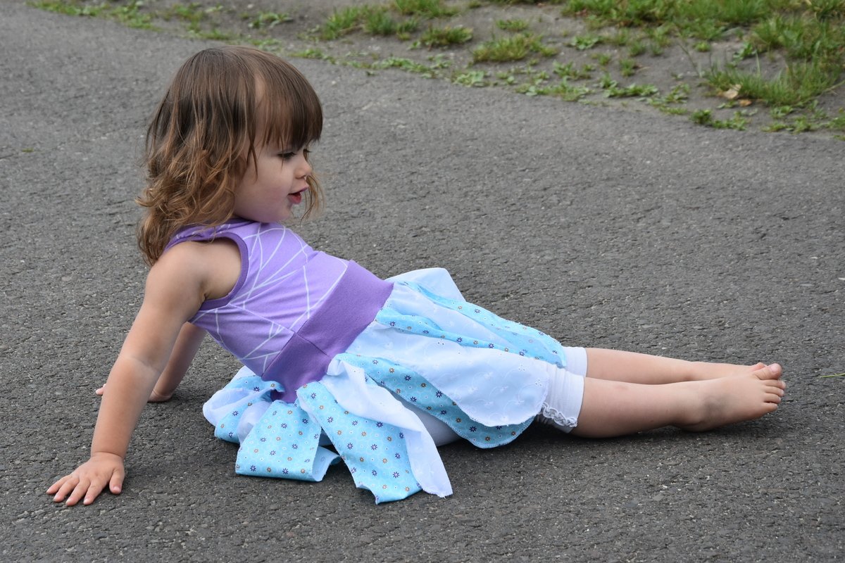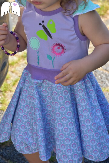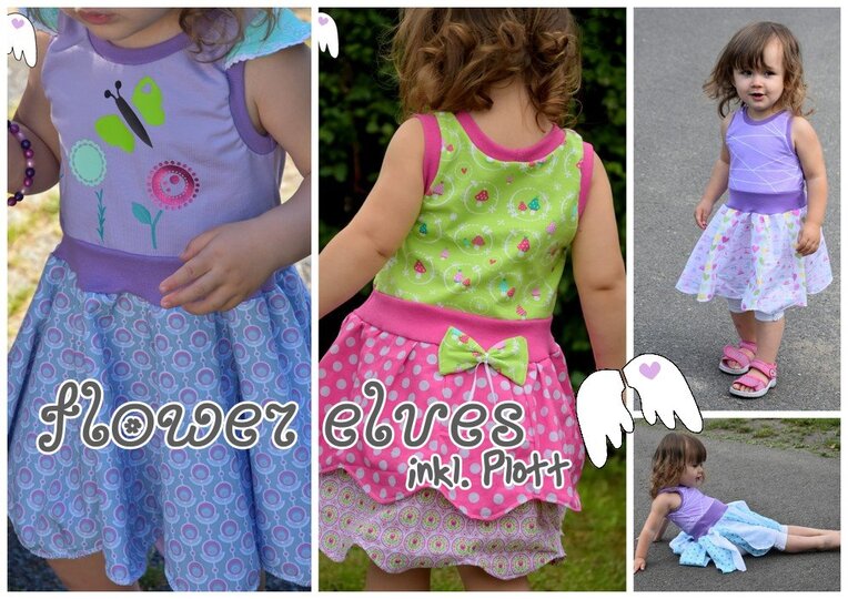 Mit diesem Blumenkleid kann auch deine kleine (und große) Elfe einfach traumhaft aussehen! Flower Elves ist ein Kleiderschnitt, der am Oberteil aus Jersey und der Rockteil aus Webware genäht wird. Einlagig, 2 Lagig, eine, 2 oder 3 "Schichten", mit Flügelärmchen oder ohne, gerafft oder nicht, umsäumt, mit Schleifchen, Tüll oder Bändchen, schmale Blüten, weite Blüten, als Drehrock,... die Möglichkeiten sind unendlich - und so wird dieser Schnitt auch nach dem 10. Kleid noch nicht langweilig, versprochen =) !