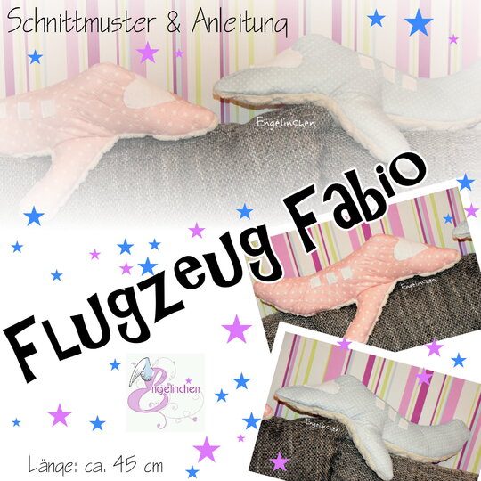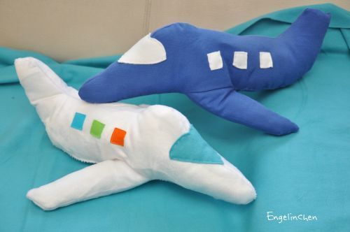 Schritt-für-Schritt bebilderte Anleitung + Schnittmuster für ein Kuschelflugzeug. Das genähte Flugzeug hat später eine Länge von ca. 45 cm. Ideal für nicht-dehnbare Stoffe
