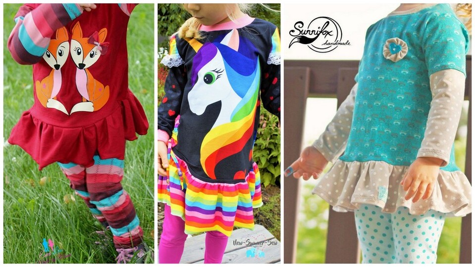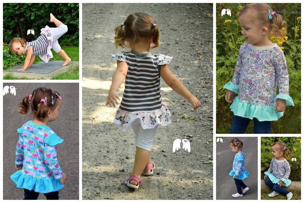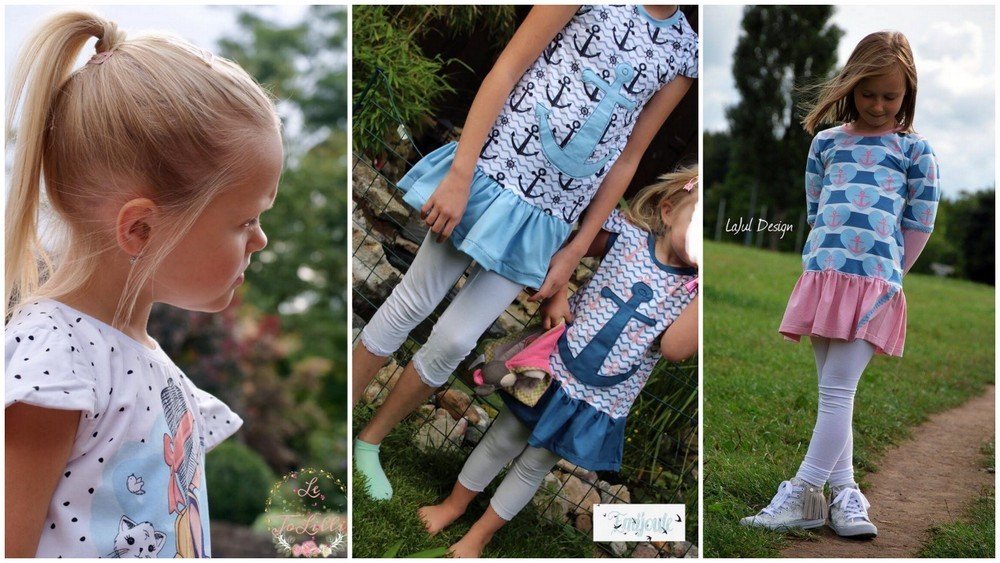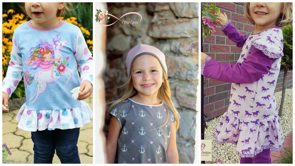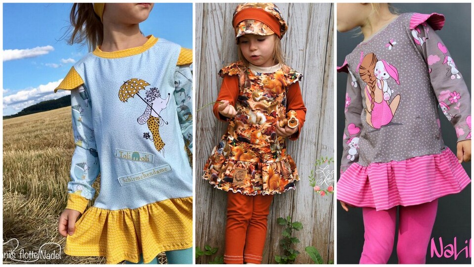 Ein absoluter Hingucker und trotzdem fix genäht: Lilli ist ein Volantshirt fürs ganze Jahr: ob mit langen Ärmeln oder ganz ohne, ob mit Flügelchen oder ohne oder gar mit Volantabschluss an den Armen: Lilli ist so unglaublich wandelbar, dass dieser Schnitt so schnell nicht langweilig wird. Nähbar von Gr. 74/80 – 134/140 aus dehnbaren Stoffen wie Jersey oder Interlock – die Flügelchen sowie der Volantteil kann auch aus nicht-dehnbaren Stoffen genäht werden.