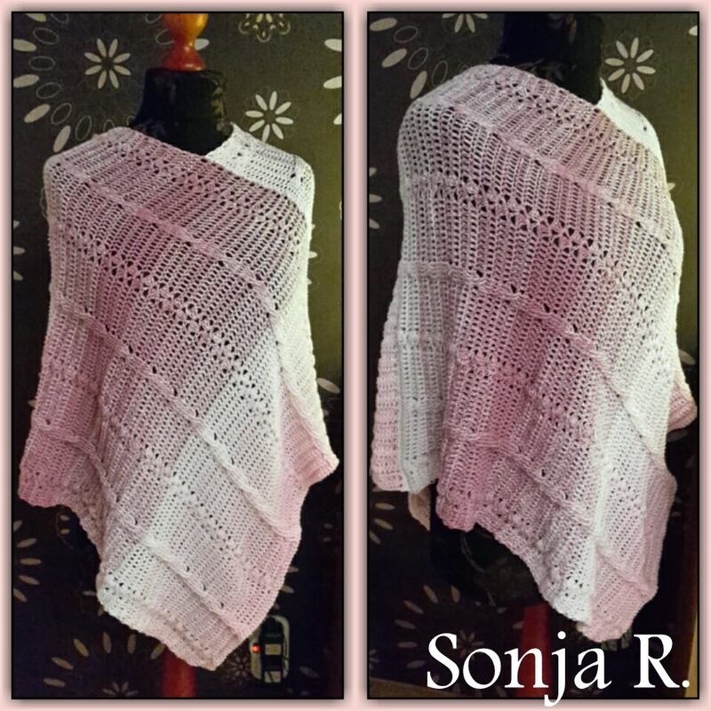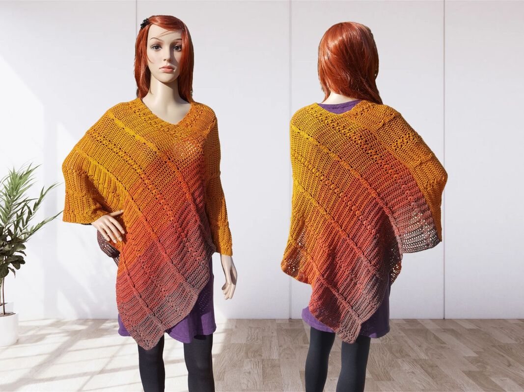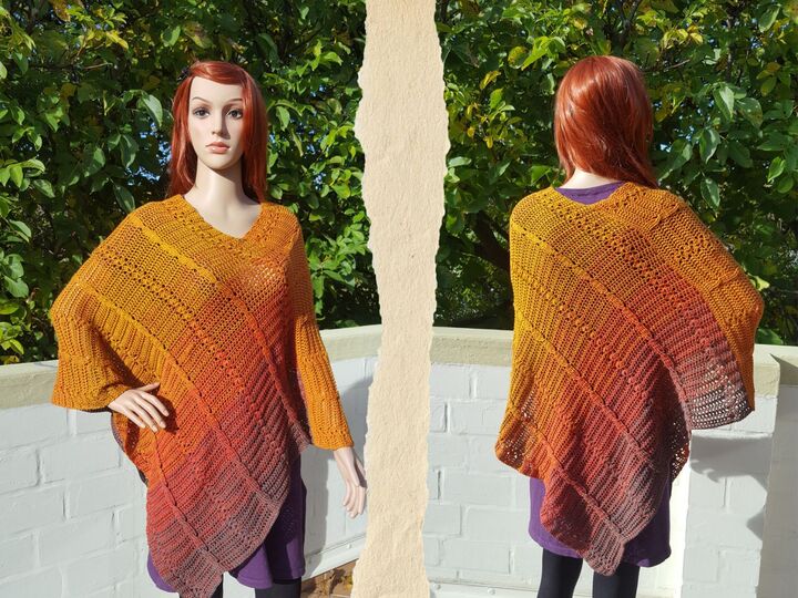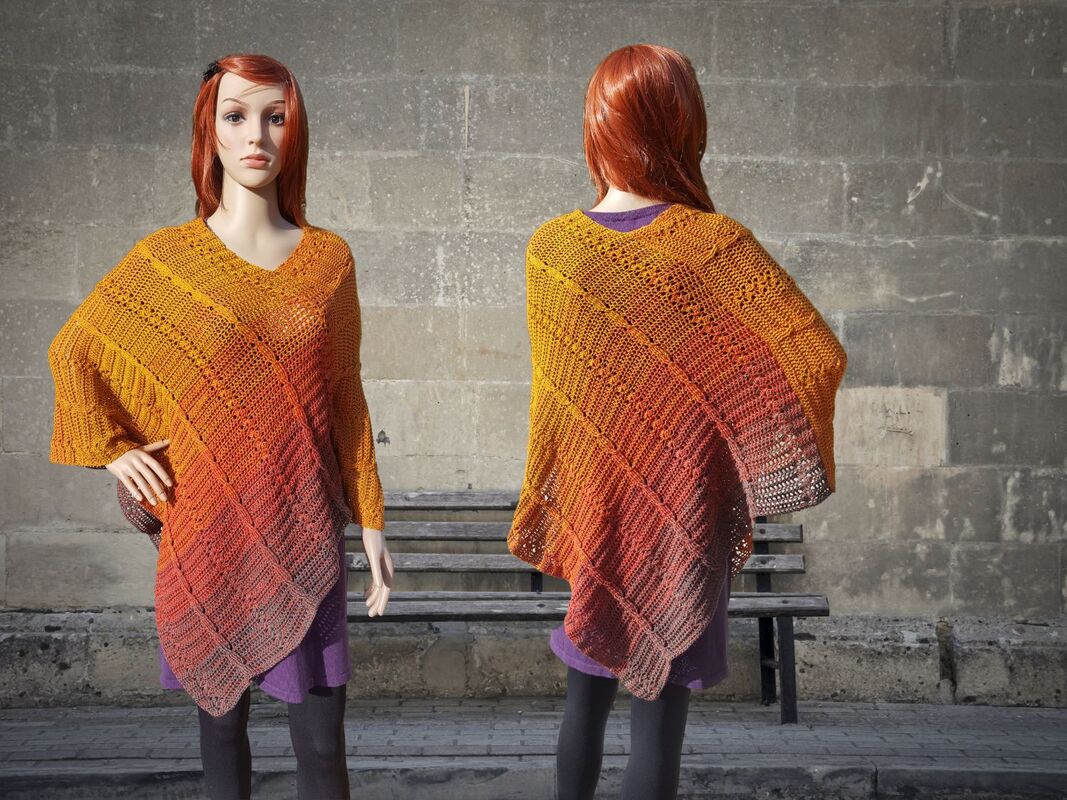 Dieser Poncho, bestehend aus 2 Rechtecken, kann ganz leicht für alle Größen angepasst werden und eignet sich für Anfänger und Fortgeschrittene gleichermaßen.