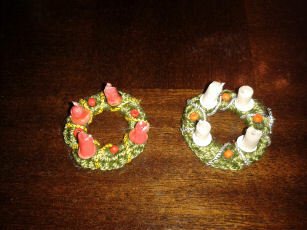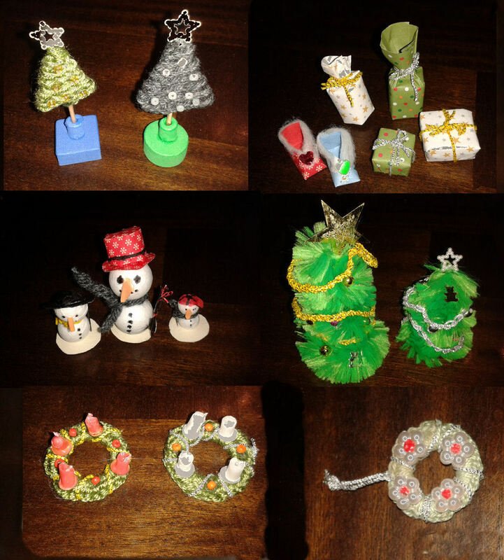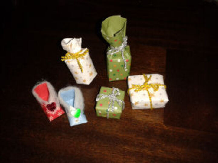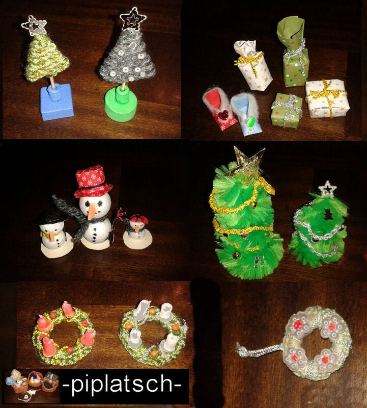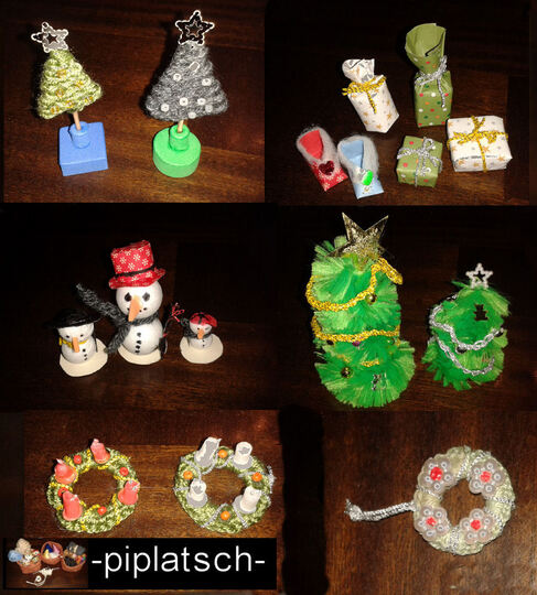 mit kleinen Bäumchen, einem Adventskranz mit echten Kerzen, Geschenken und anderes.