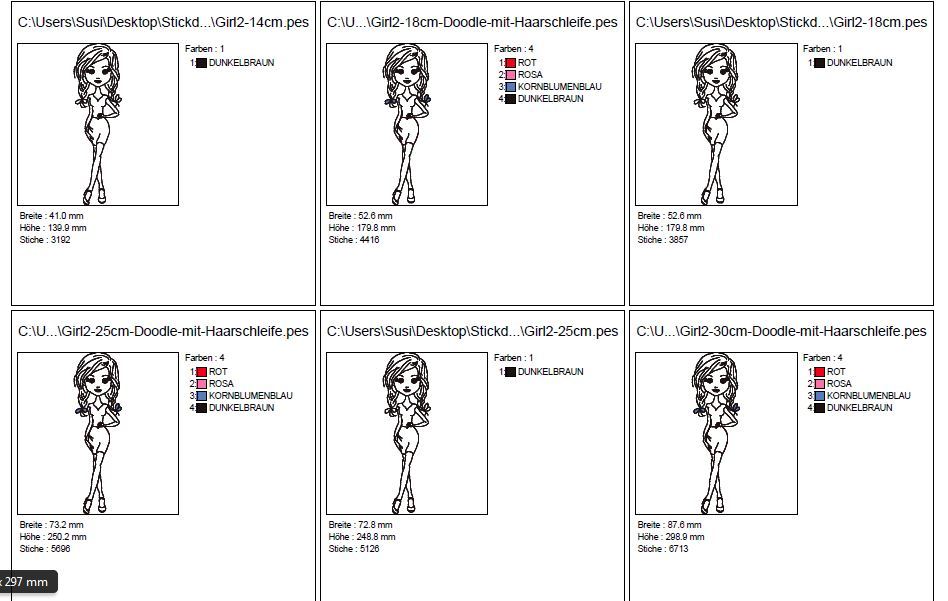 Stickdatei lovely Girl "Lotta" für allerliebstes Redwork Mädchen in 5 Größen