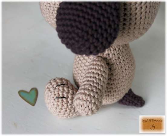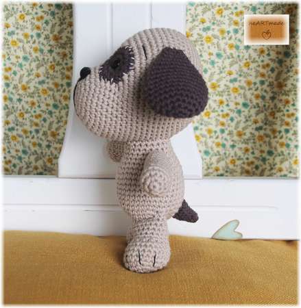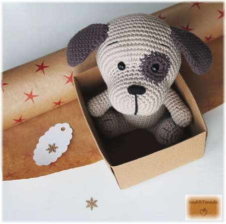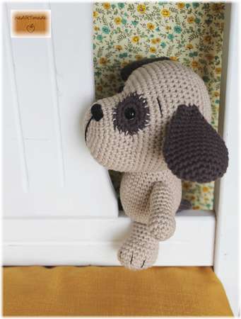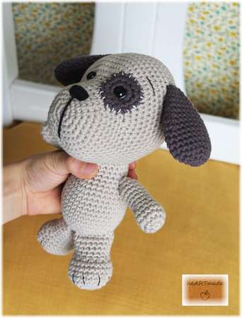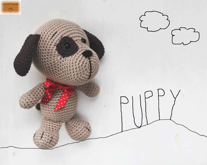 Der Hund ist von naturalem Baumwollgarn, kleinen liebevollen Detailien und einer extra Portion Liebe gemacht - aber für Dein kleines Hündchen kannst Du jedes Garn verwenden, das Du gern magst - Hündchen wird ein bisschen größer oder ein bisschen kleiner, bleibt aber immer gleich niedlich!