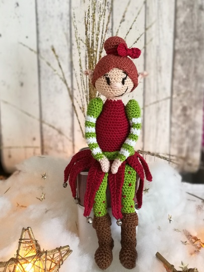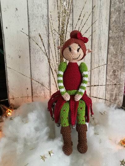 Mit dieser Häkelanleitung häkelt man sich seine eigene Weihnachtselfe Feline. Um Feline zu häkeln, brauch man folgende Kenntnisse: Kettmaschen, feste Maschen,halbe Stäbchen,Stäbchen,Doppelstäbchen.Man sollte in Reihen und Runden häkeln können.