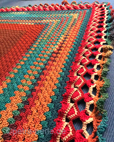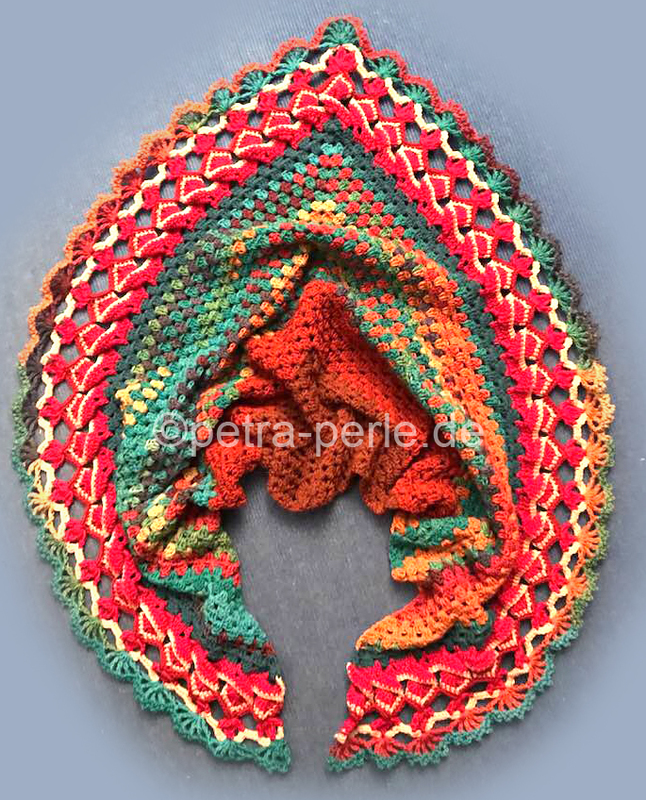 Der außergewöhnliche Abschluss gibt dem Tuch "Wollcalli" eine eigene Note.