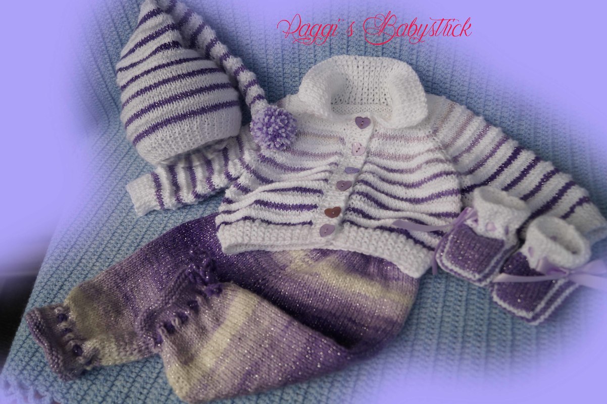 Das Set ist aus Babysoftwolle Nd. - Nr. 3 gestrickt.