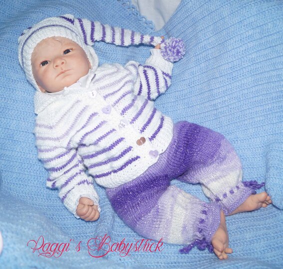 Strickanleitung für ein wunderschönes Set, 4-teilig für Babys & Reborns, Gr. 50/56