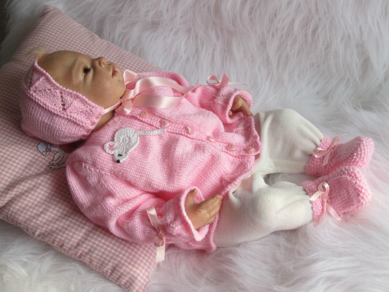 Strickanleitung für ein wunderschönes Set, 3-teilig für Babys & Reborns, Gr. 50/54