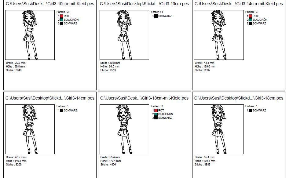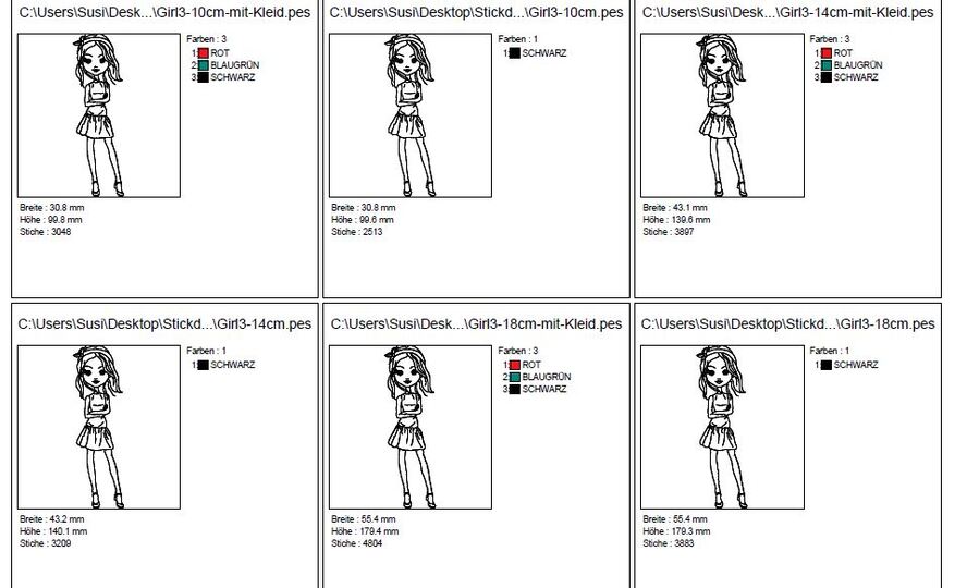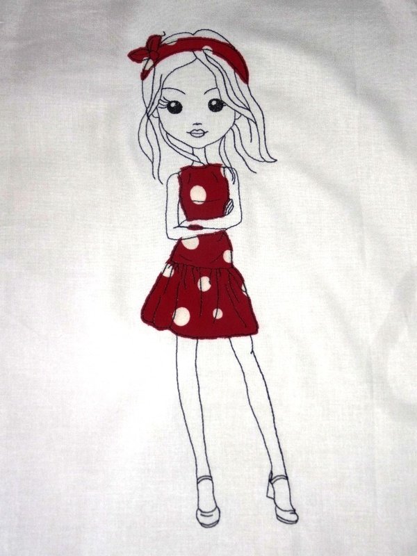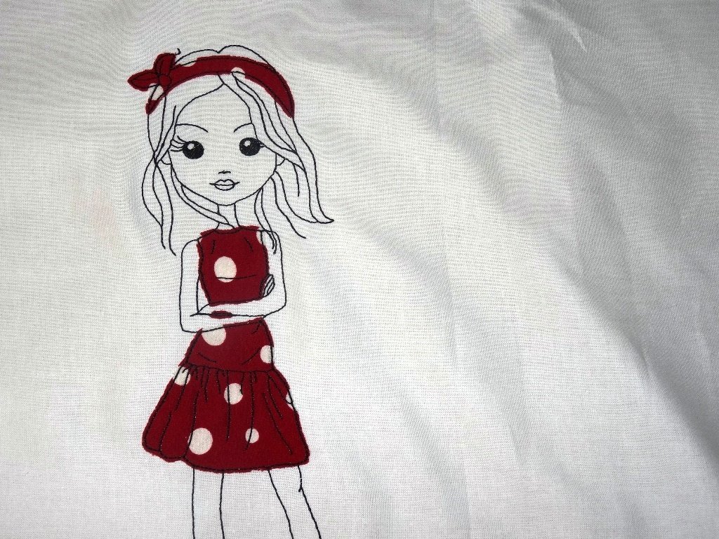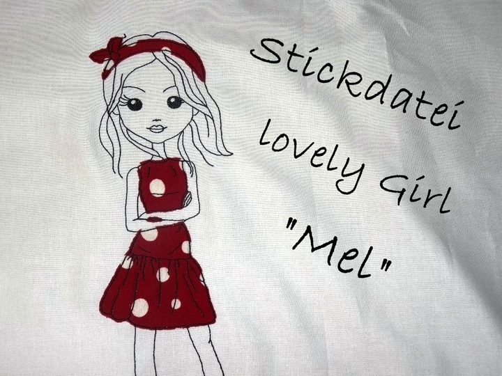 Stickdatei lovely Girl "Mel" für allerliebstes Redwork Mädchen in 5 Größen