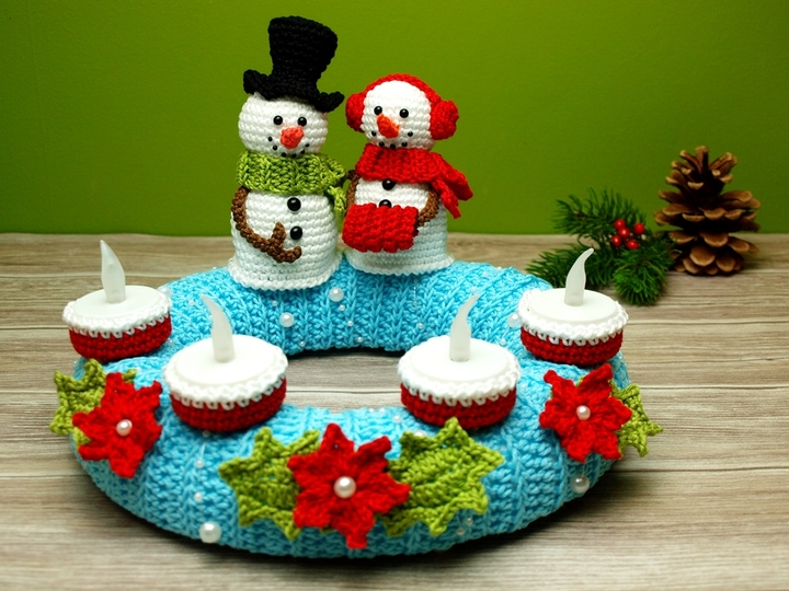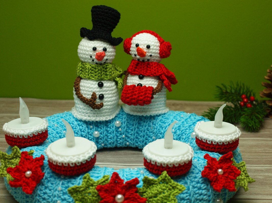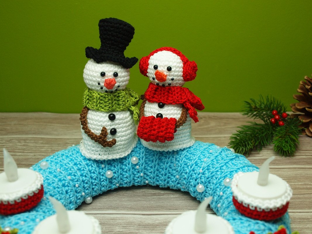 Häkelanleitung für einen "Schneemann-Tischkranz: